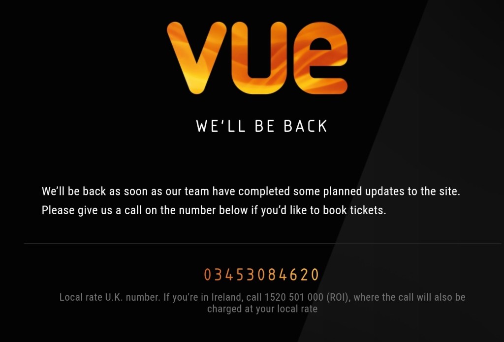 This is Vue Cinema’s contact number, if you are experiencing any issues- 03453084620