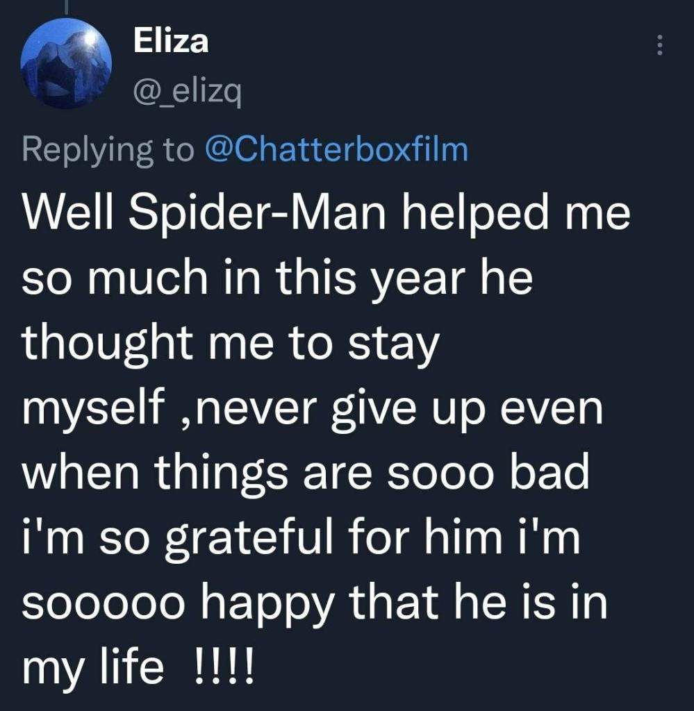 Spider-Man helped people get through difficult times. Fans also had life changing impacts to their health and their way of thinking, for the better.